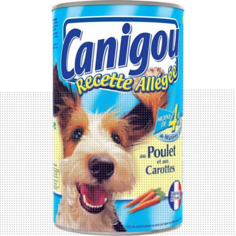 Canigou Pâtée avec morceaux de poulet pour chien 1,2kg, recette allégée au poulet et aux carottes - Aliment complet pour chiens adultes. Lot économique de 6 boîtes. Viandes et sous-produits animaux (23% dont poulet 4%), légumes (carottes 4%), céréales, substances minérales. Produit unitaire EAN 3065890124660, lot de 6 EAN 3701018070722.